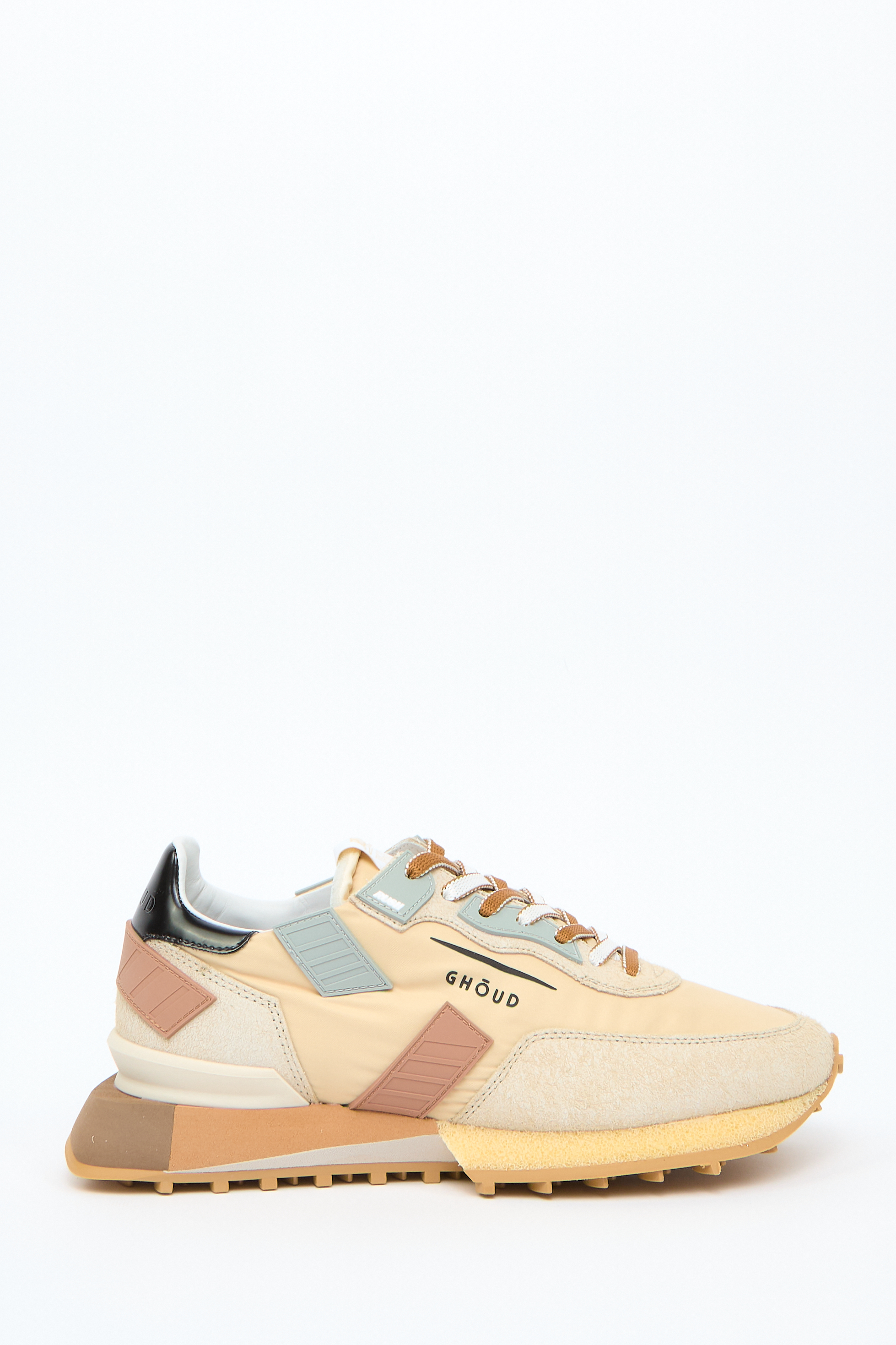 Дизайн со вставками из замши теленка, нашивка с логотипом на язычке, принт с логотипом сбоку, закругленный носок, шнуровка спереди, фирменная стелька, плоская резиновая подошва.