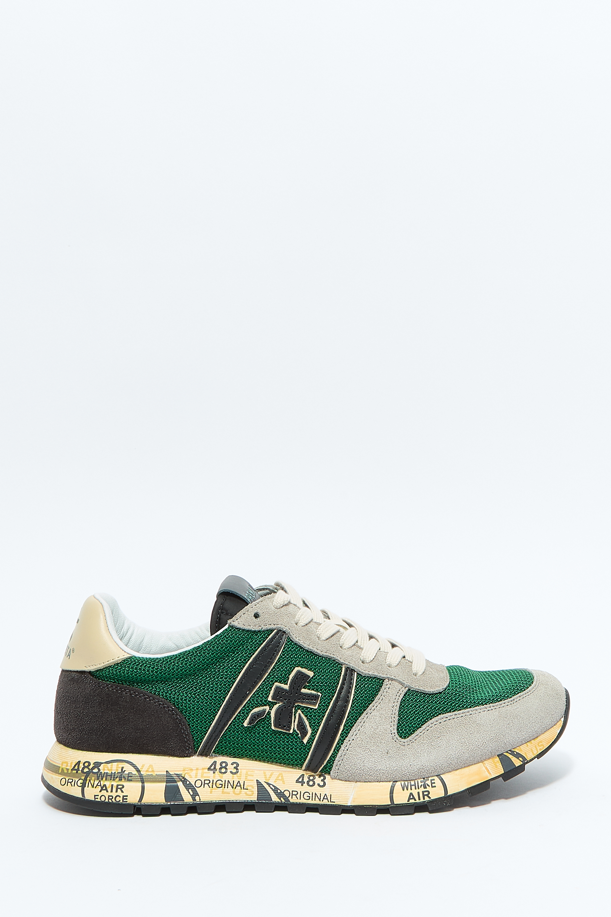 Дизайн со вставками, сетка, аппликация с логотипом сбоку, нашивка с логотипом на язычке, логотип на пятке, кожаная стелька с логотипом, миндалевидный носок, резиновая подошва, шнуровка спереди.