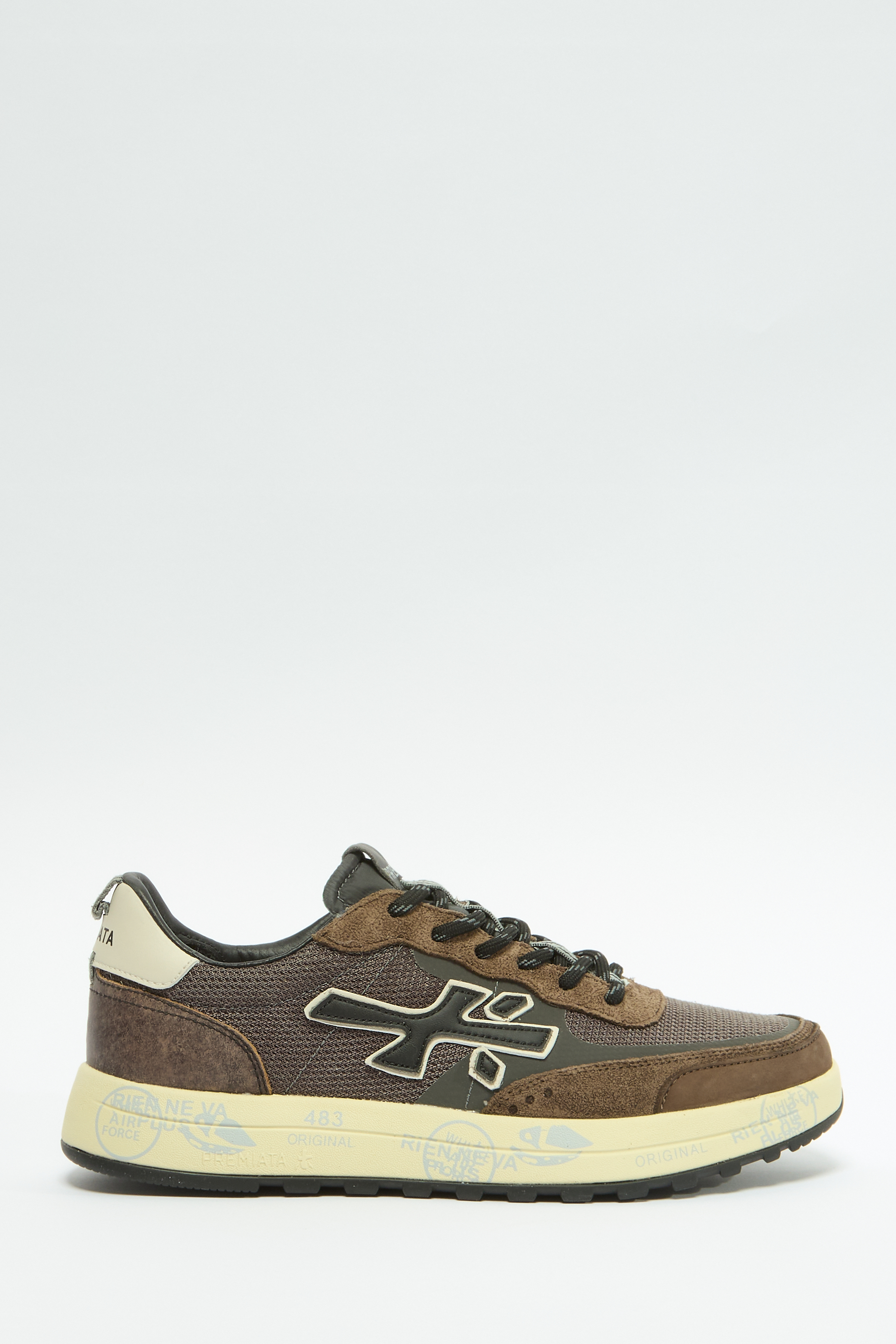 Аппликация, дизайн со вставками, межподошва с принтом, шнуровка, петля для подтягивания сзади.