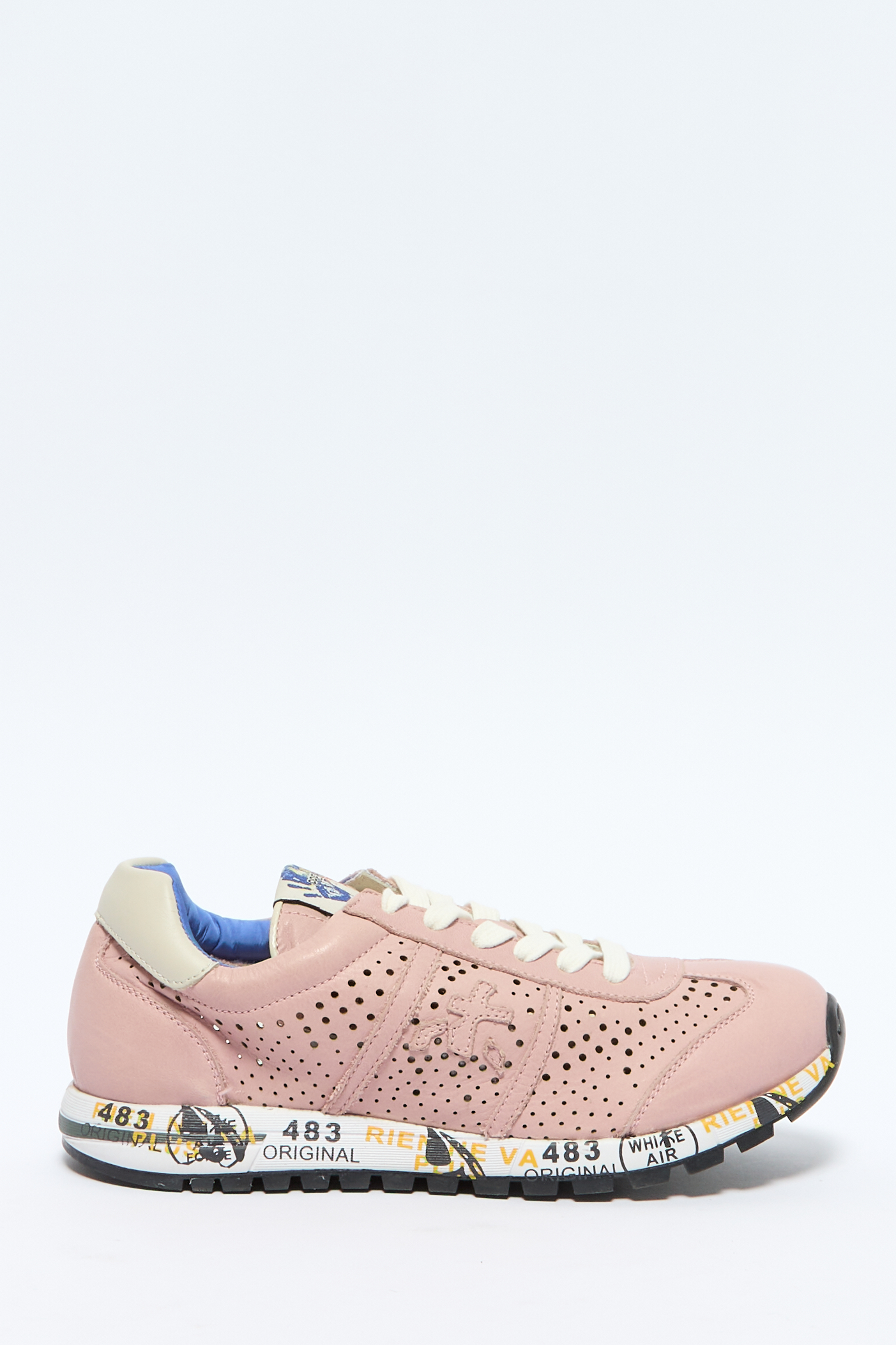 Дизайн с перфорацией, круглый носок, контрастная шнуровка спереди, нашивка с логотипом на язычке, тисненый логотип сбоку, плоская резиновая подошва.