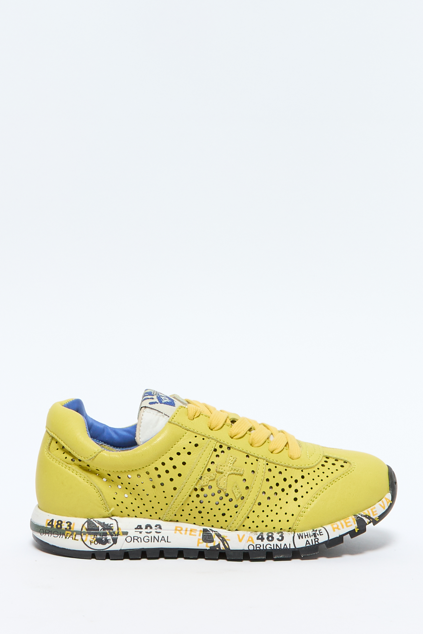 Дизайн с перфорацией, круглый носок, контрастная шнуровка спереди, нашивка с логотипом на язычке, тисненый логотип сбоку, плоская резиновая подошва.