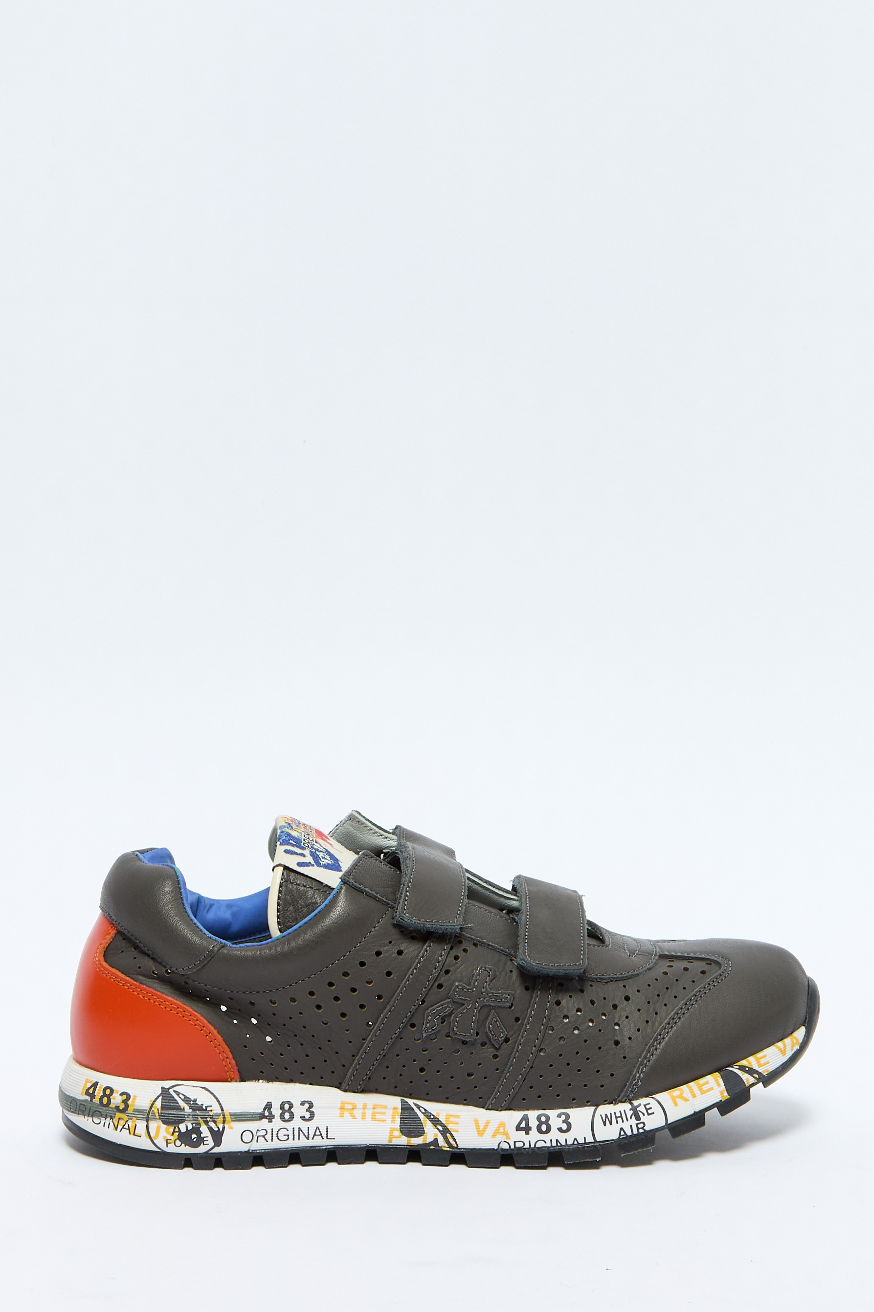 Дизайн с перфорацией, контрастный задник и застежка на липучках, логотип на язычке.