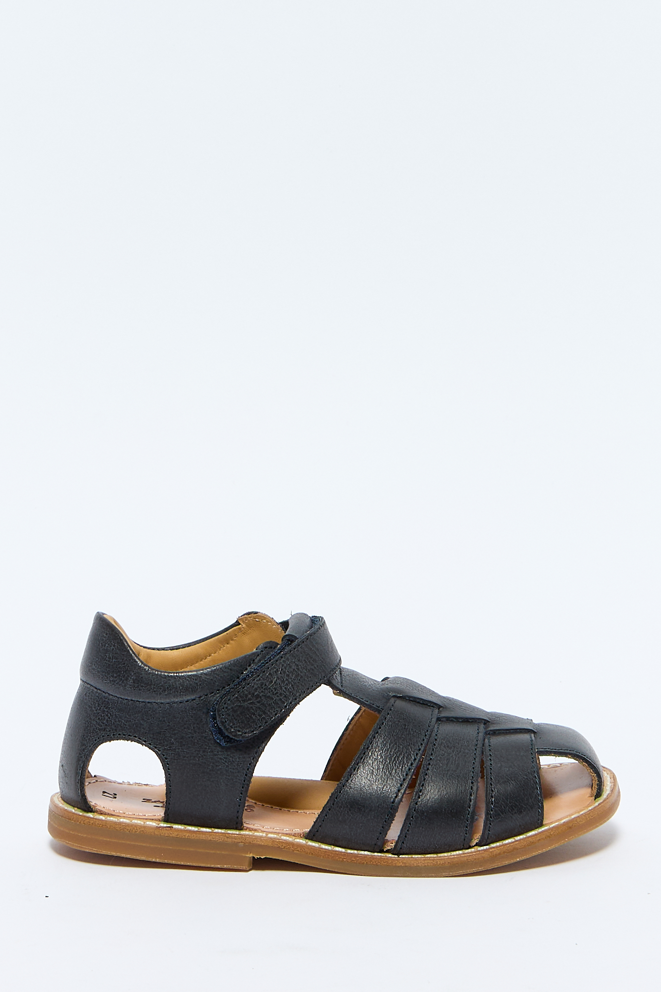 Плоская подошва, застежка на липучке спереди и дизайн с ремешками.