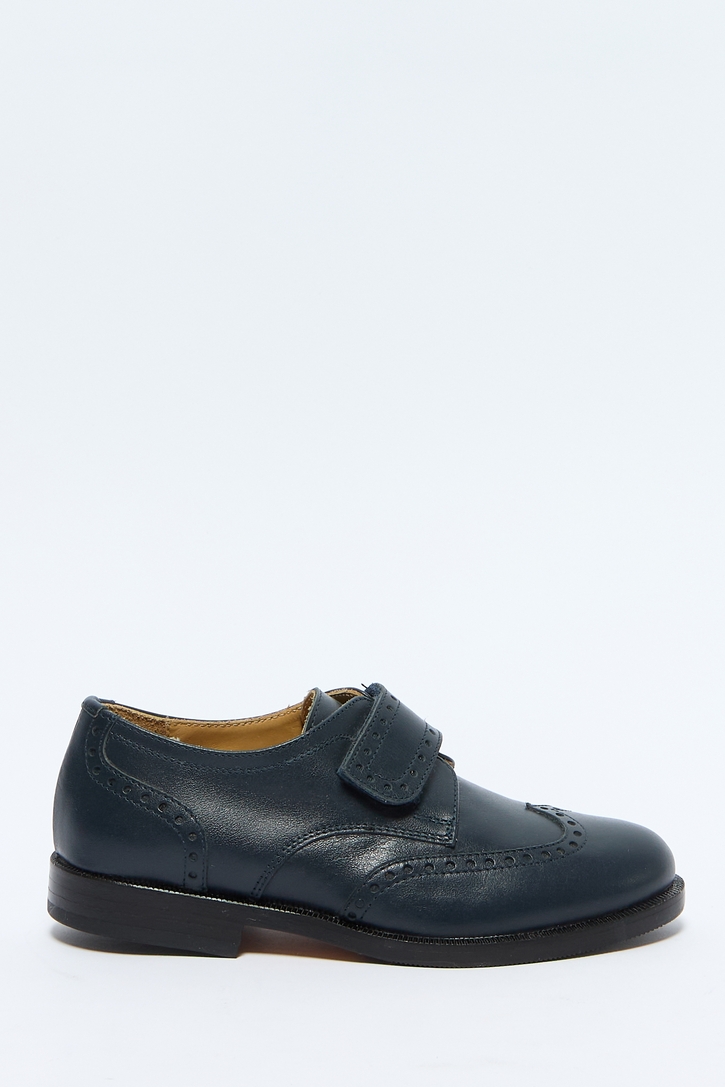 Круглый мыс, застежка на липучках спереди, плоская подошва.
