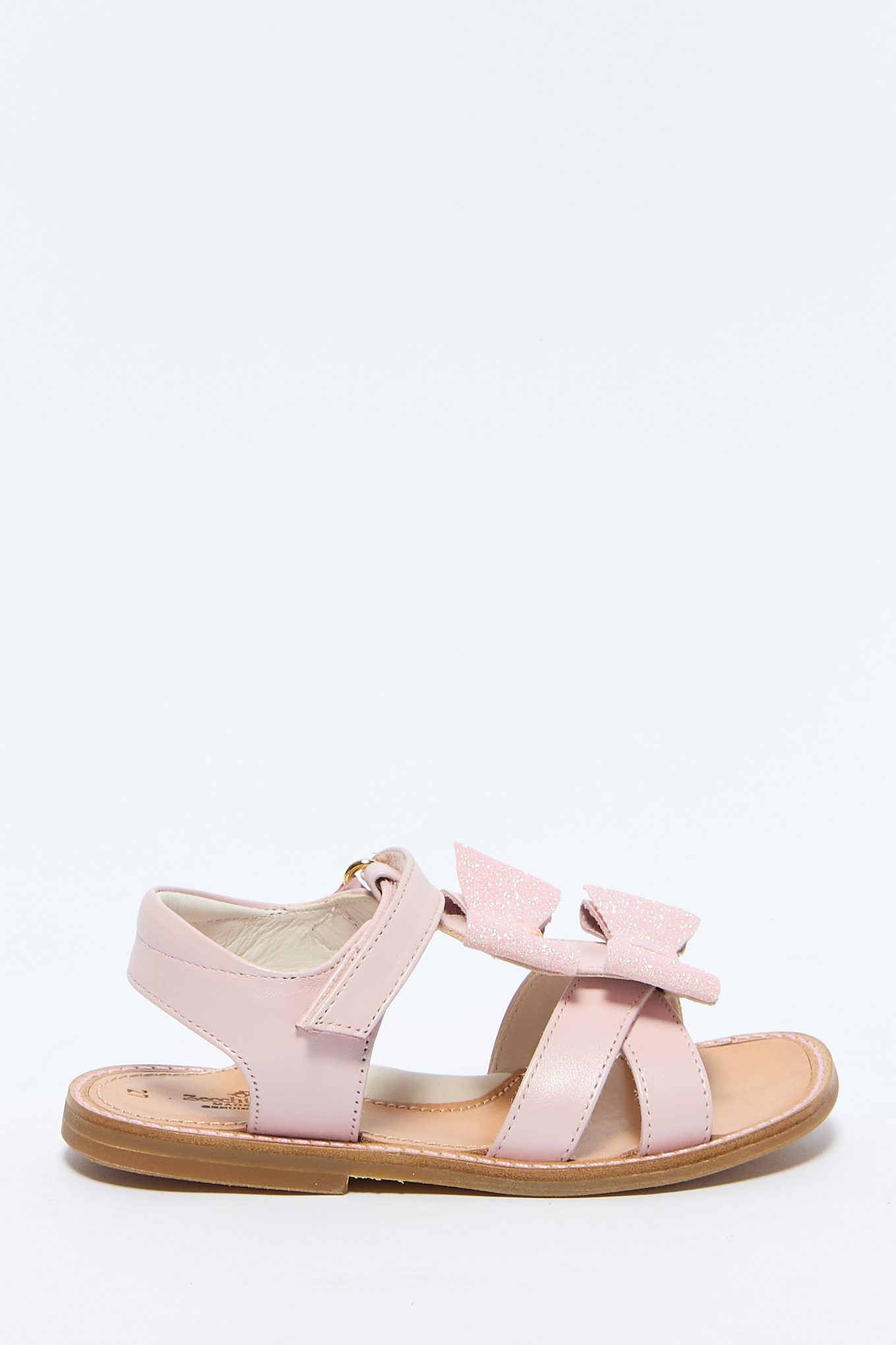 Застежка на липучке, дизайн с блестящими бантами спереди и ремешками.