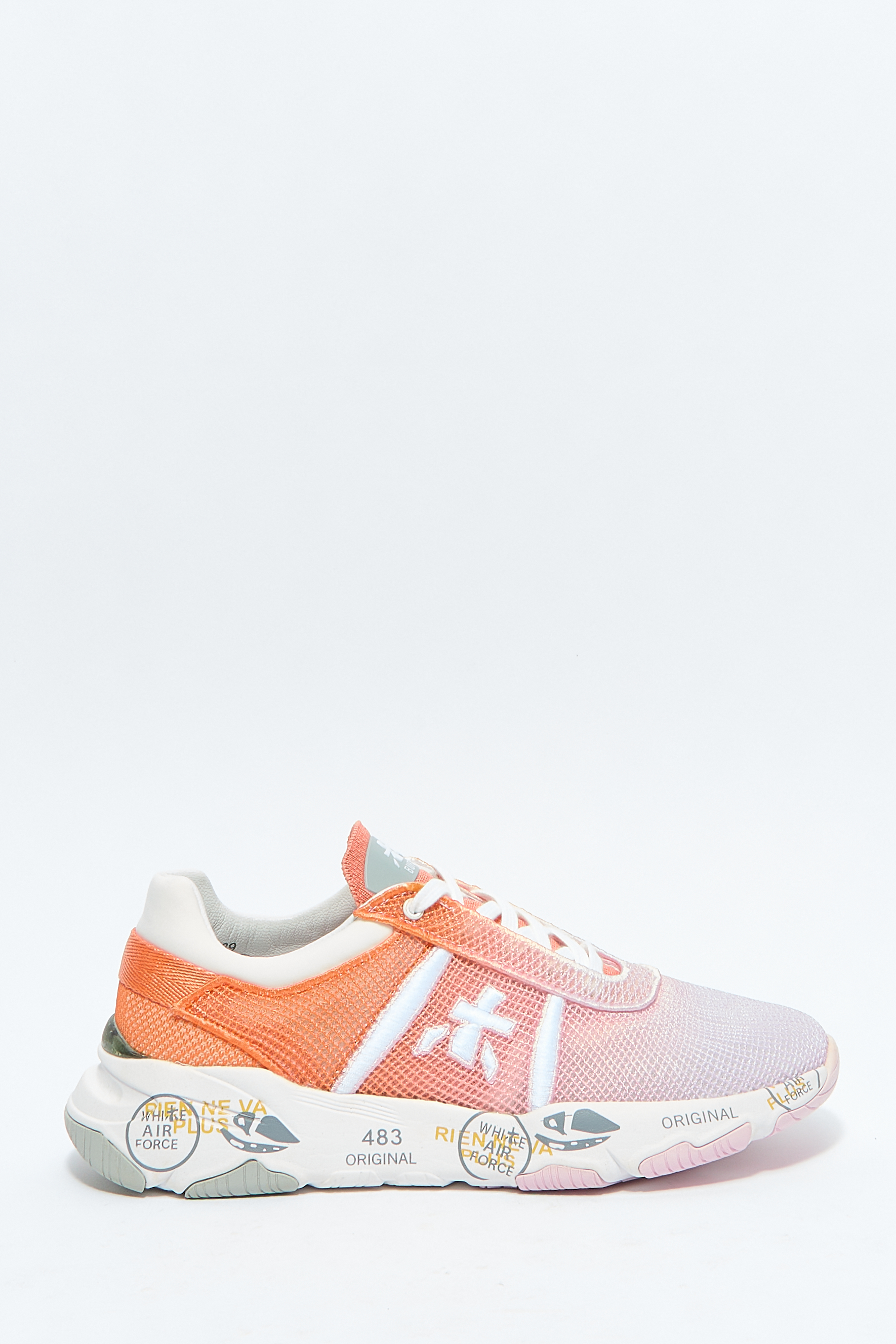 Сетчатые вставки, вышитый логотип сбоку, нашивка с логотипом на язычке, стелька с логотипом, закругленный носок, шнуровка спереди и массивная подошва.