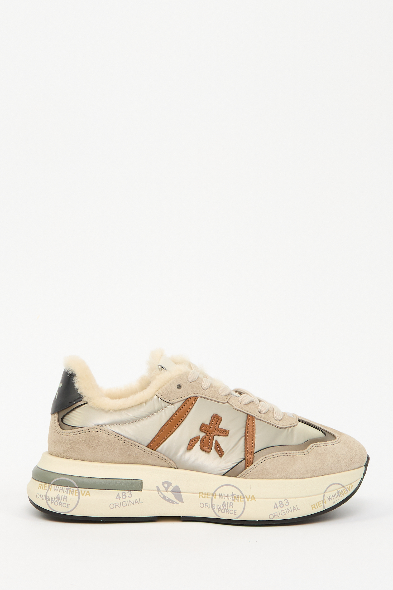 Вставки, нашивка с логотипом сбоку, мех овцы, нашивка с логотипом на язычке, шнуровка спереди, задник с логотипом и массивная резиновая подошва.