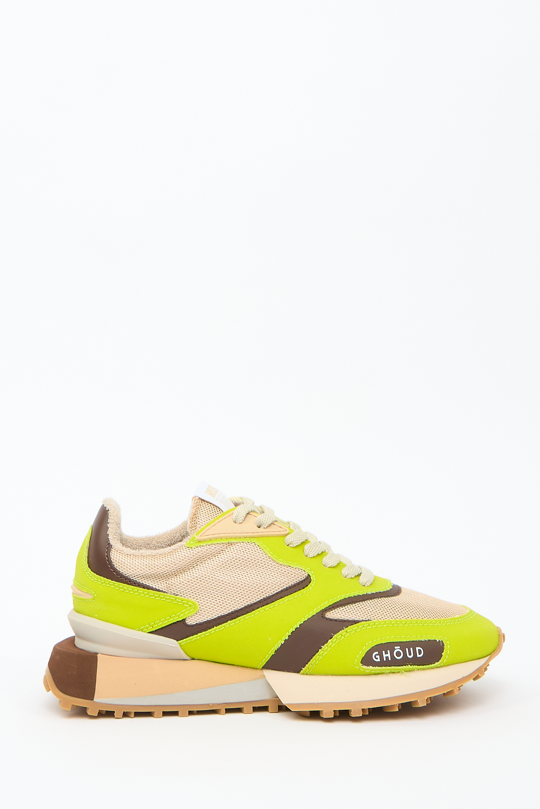 Телячья кожа, парусина, вставки с блестками, логотип сбоку, светоотражающие детали и резиновая подошва.