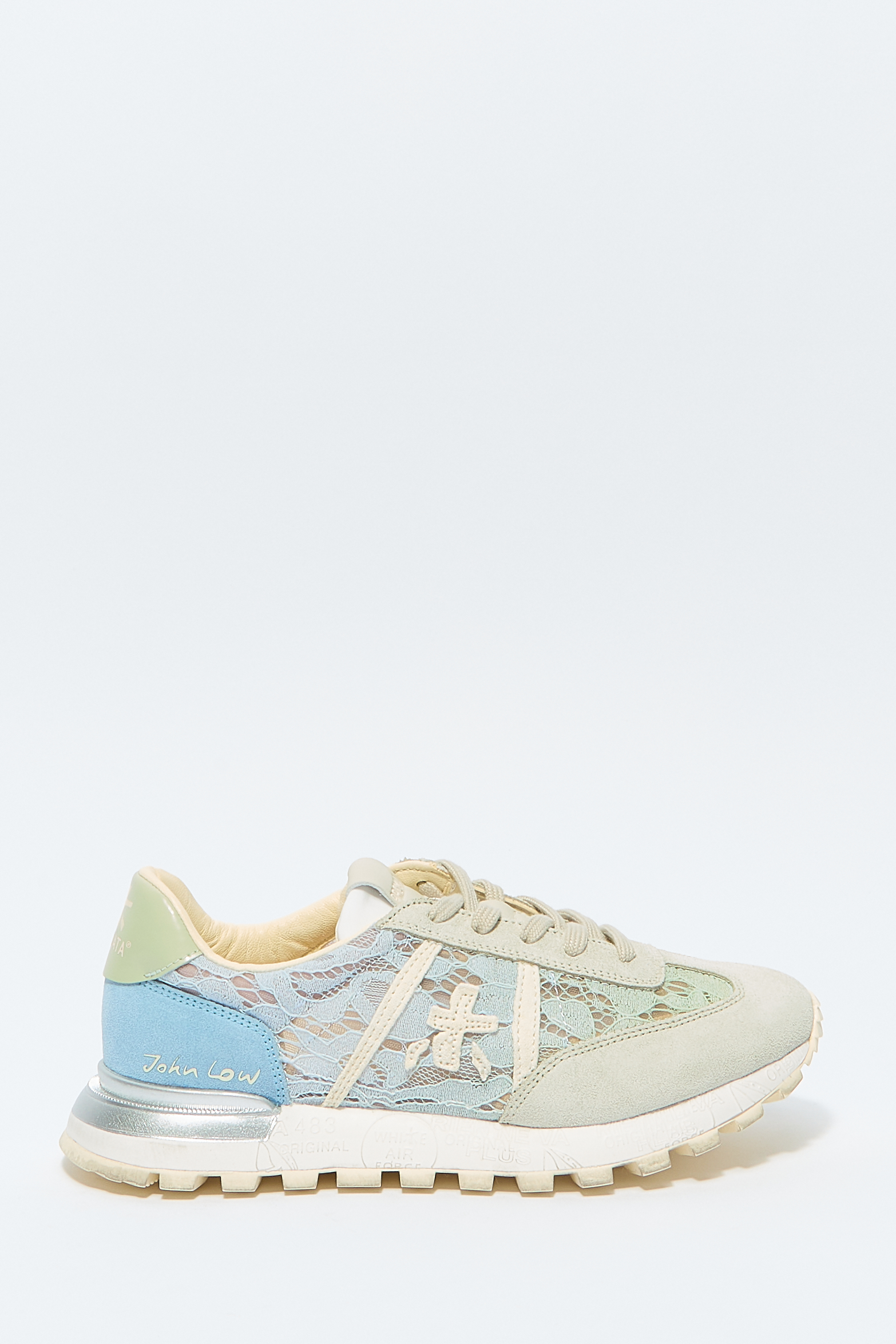 Замшевые и кружевные вставки, нашивка с логотипом сбоку, текстовый принт сбоку, нашивка с логотипом на язычке, контрастный задник с логотипом, закругленный носок, шнуровка спереди, уплотненная щиколотка, модель без подкладки, стелька с логотипом, массивная резиновая подошва.