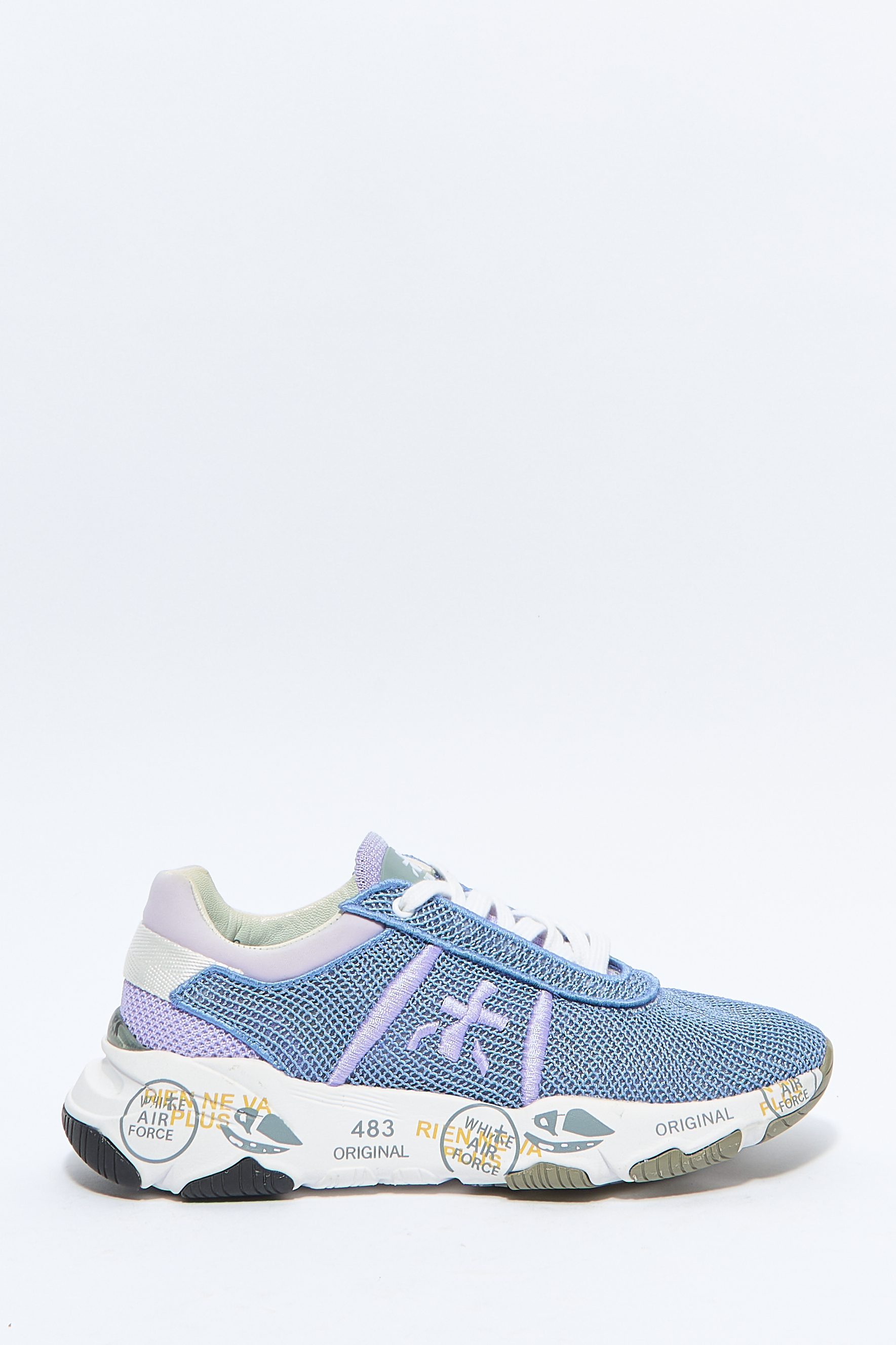 Сетчатые вставки, вышитый логотип сбоку, нашивка с логотипом на язычке, стелька с логотипом, закругленный носок, шнуровка спереди и массивная подошва.