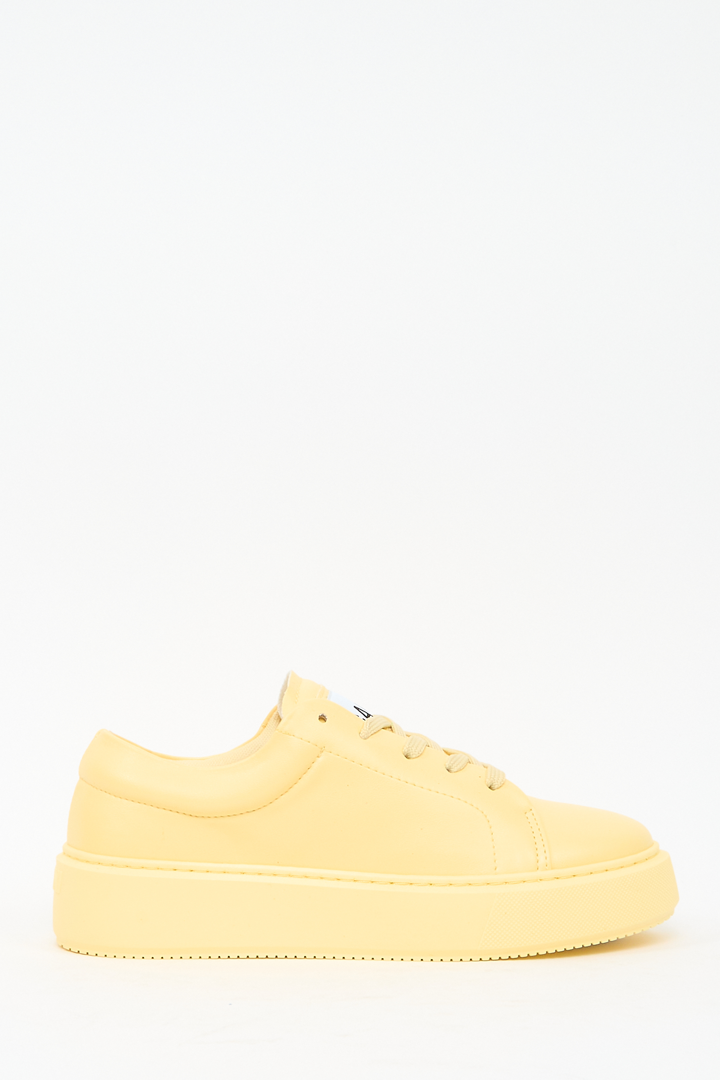 Тисненый логотип спереди, нашивка с логотипом на язычке, закругленный носок, перфорированный носок, шнуровка спереди и плоская платформа.