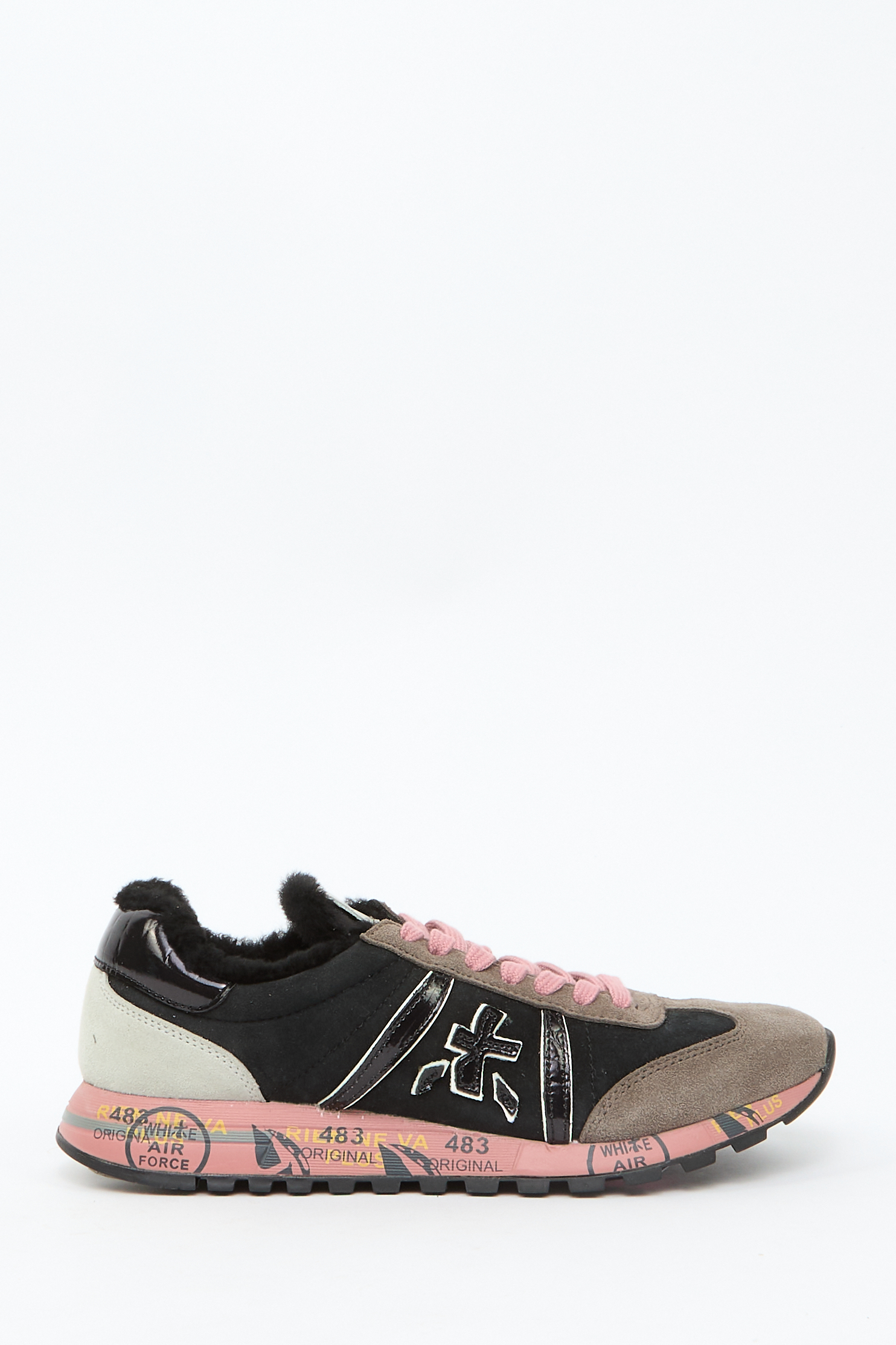 Нашивка с логотипом сбоку, нашивка с логотипом на язычке, вставки, шнуровка спереди, закругленный носок, плоская резиновая подошва и стелька с логотипом.