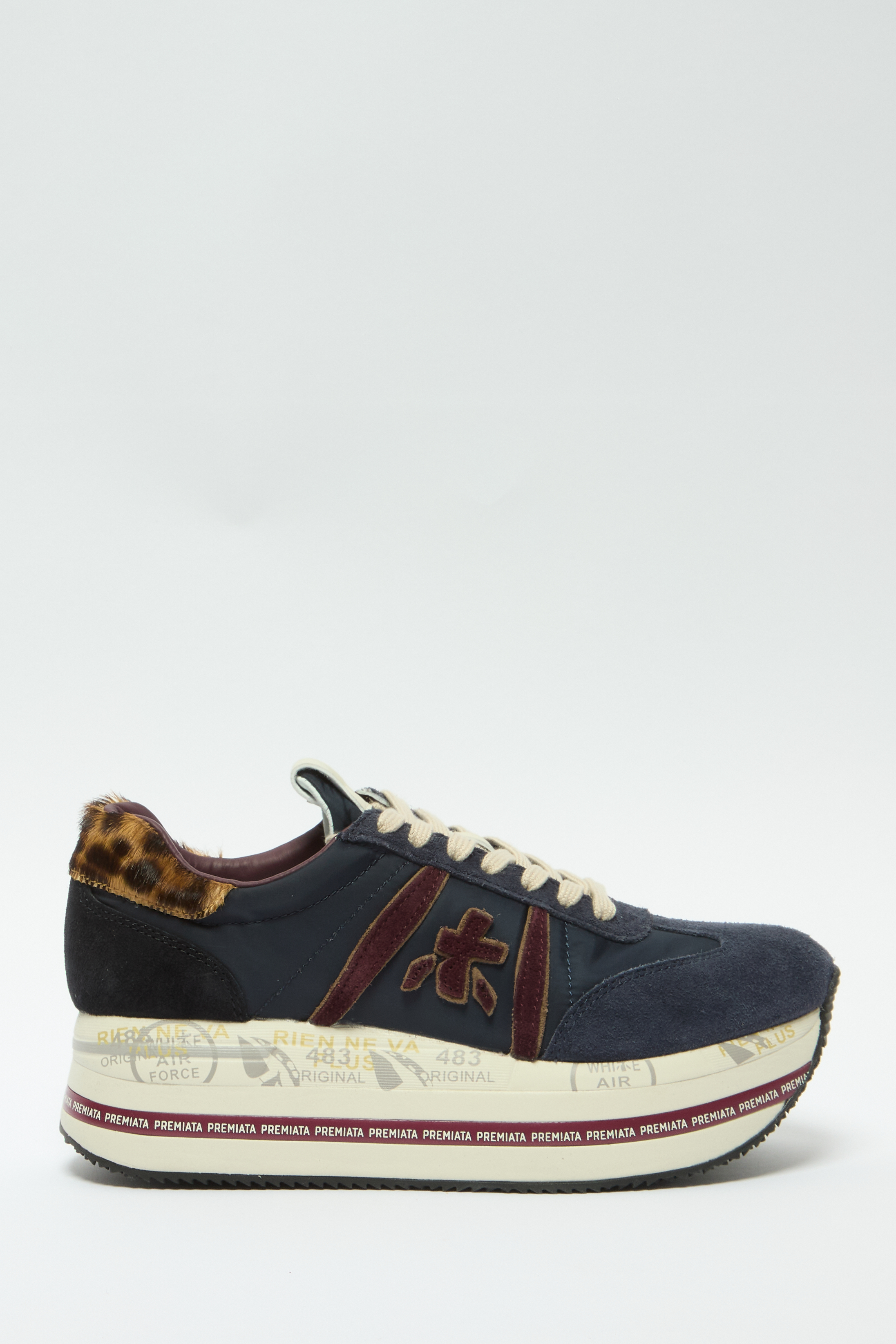 Мягкий кожаный верх сочетается с изысканными замшевыми деталями, создавая утонченный образ с городским шармом. Завершает образ фирменный логотип Premiata на подошве.