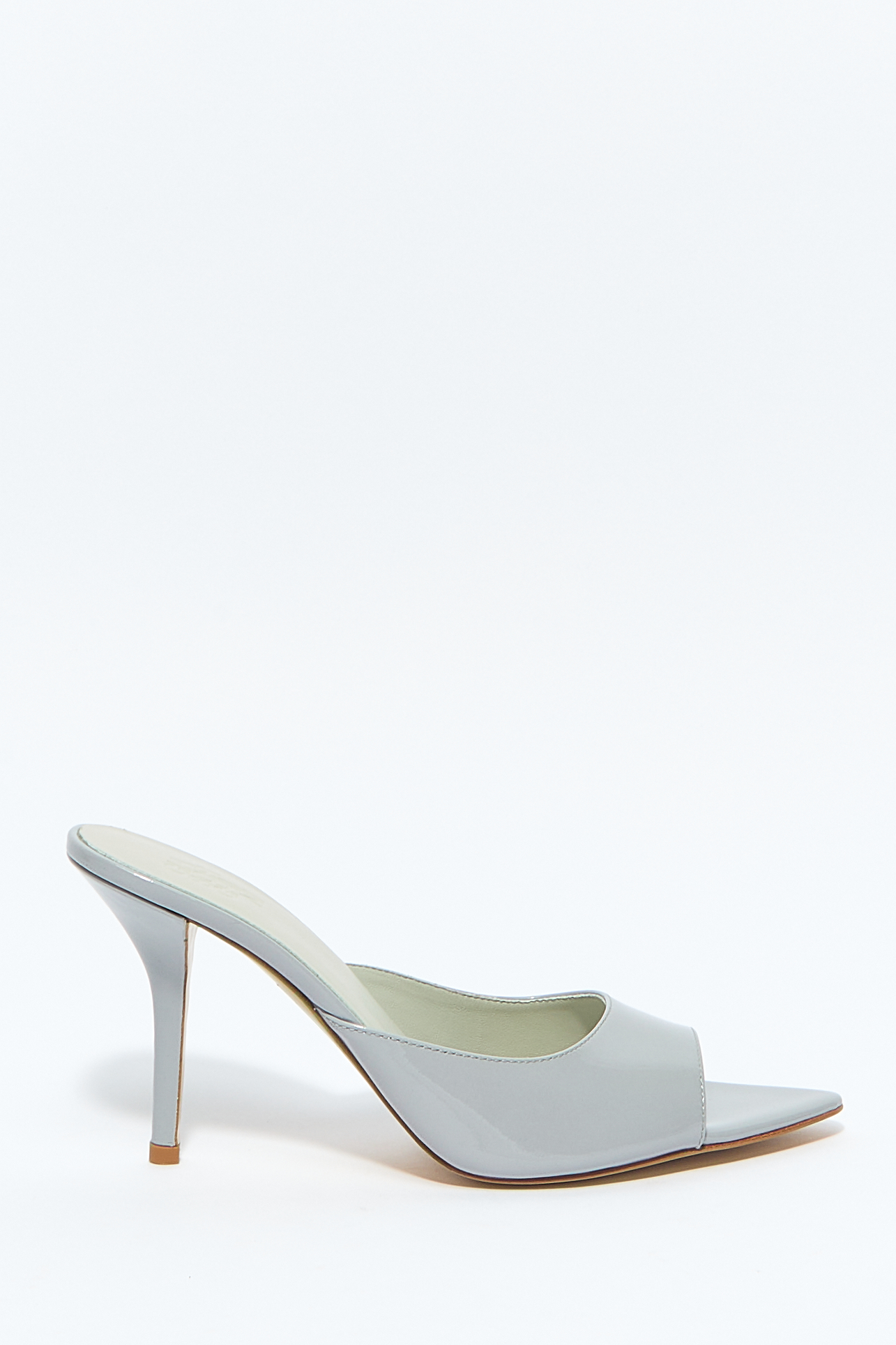 Модель без застежки, открытый носок, заостренный носок и стелька с логотипом.