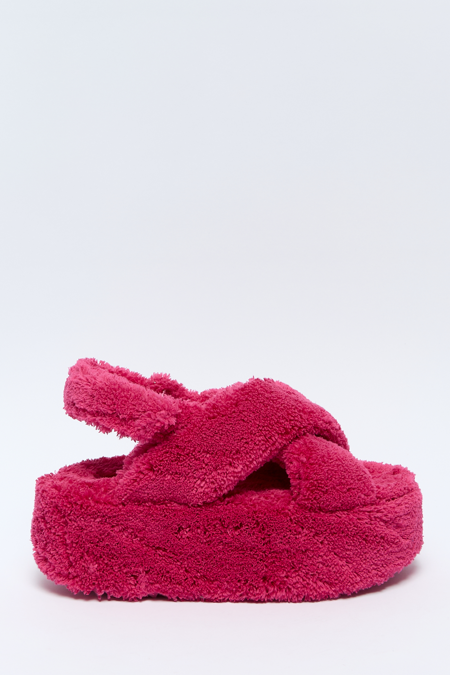Плоская резиновая подошва, меховые вставки, логотип на стельке.