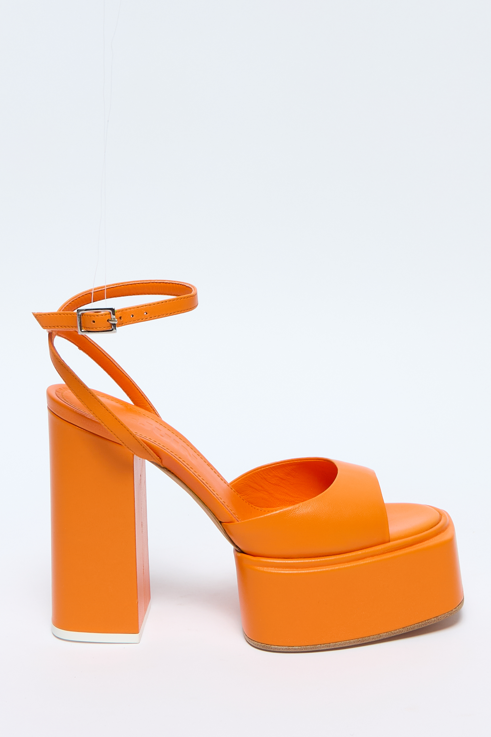 Кожаная подкладка, открытый носок, ремешок на палец, ремешок на щиколотке с пряжкой, подошва на платформе и высокий блочный каблук.