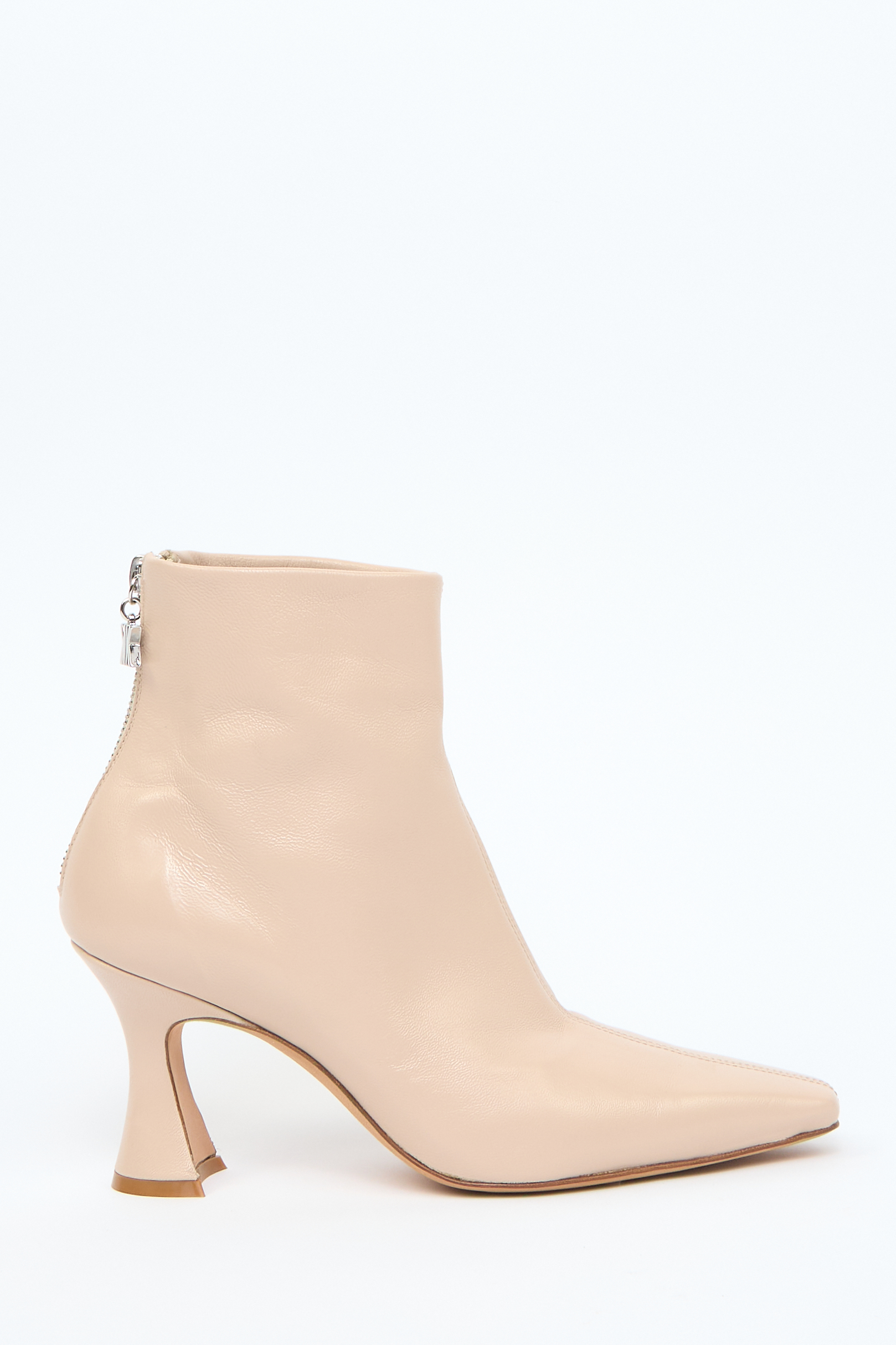 Застежка на молнии сзади, заостренный носок и фигурный каблук.