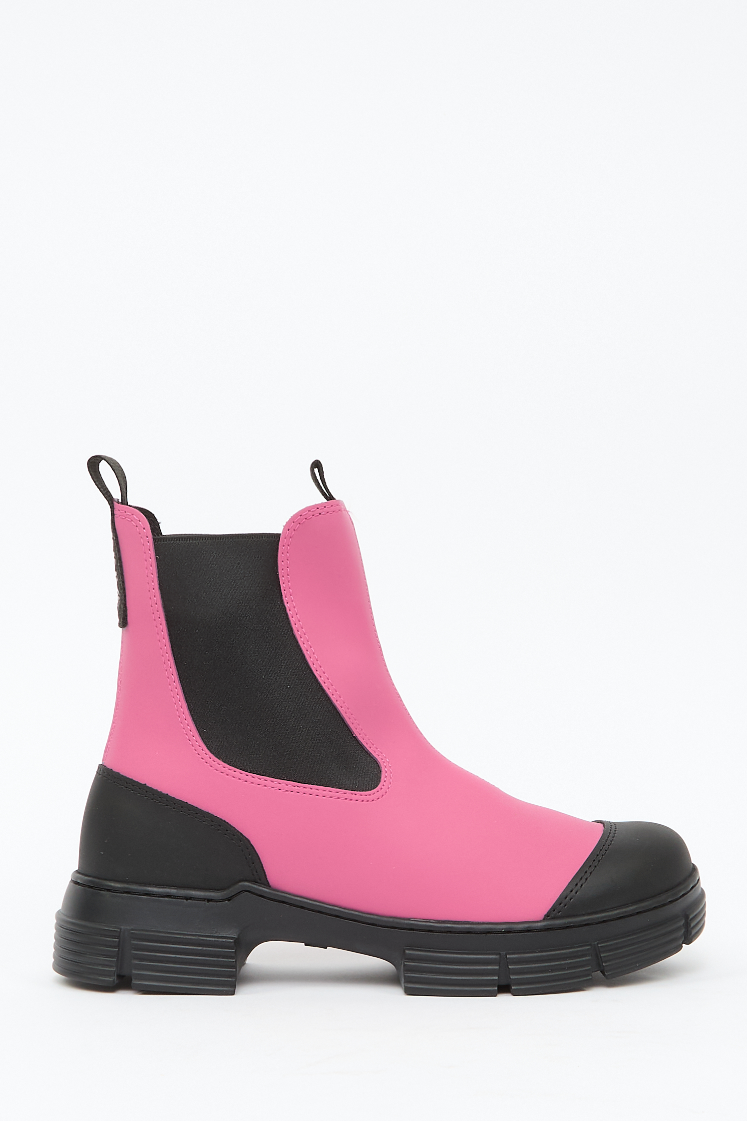 Тисненый логотип сзади, строчка в тон, модель без застежки, закругленный носок, высота по щиколотку, эластичные боковые вставки, двойная петля для подтягивания, массивная резиновая подошва и блочный каблук.