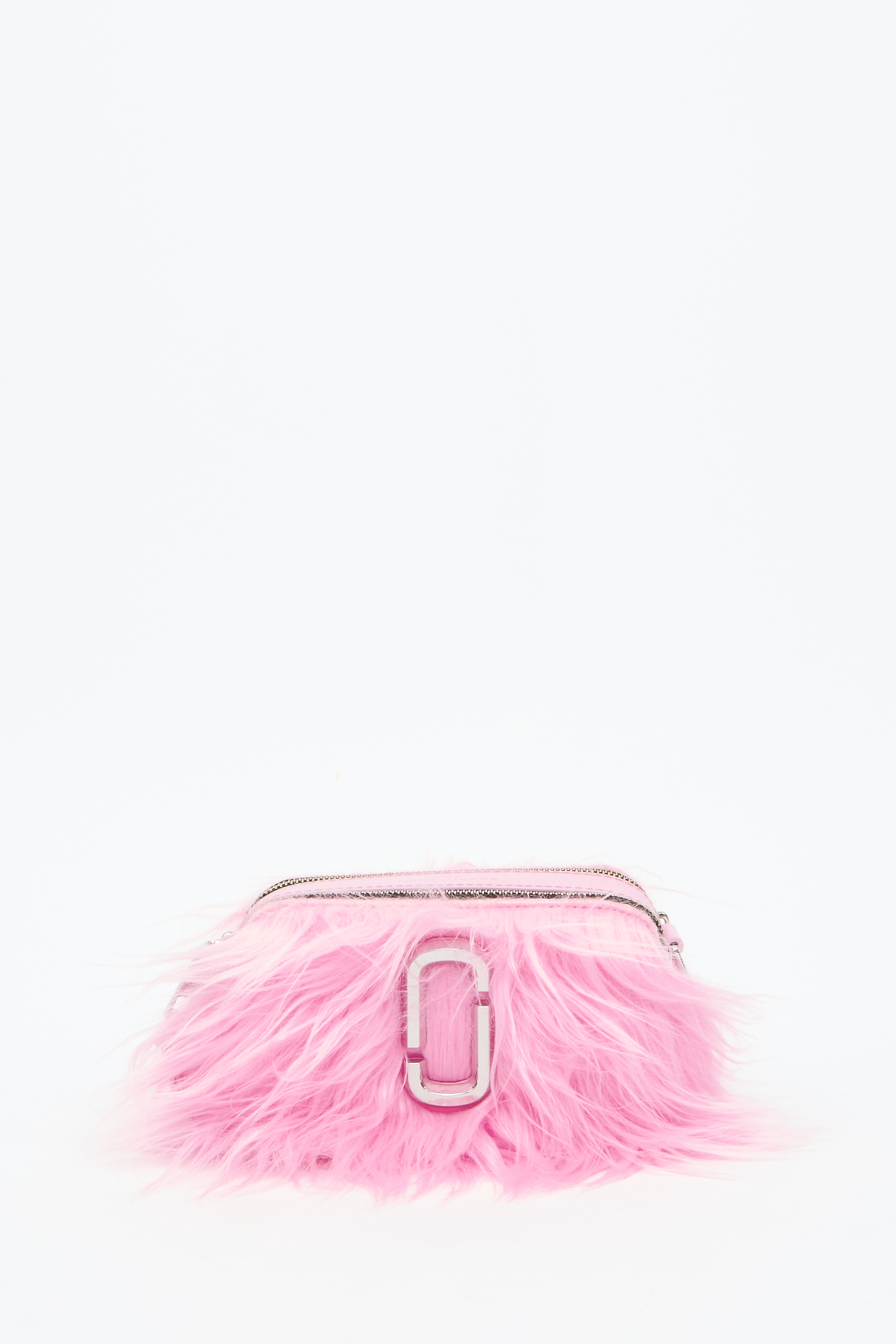 Отделка из искусственного меха, металлический логотип, серебристая фурнитура и съемный регулируемый ремень на плечо.