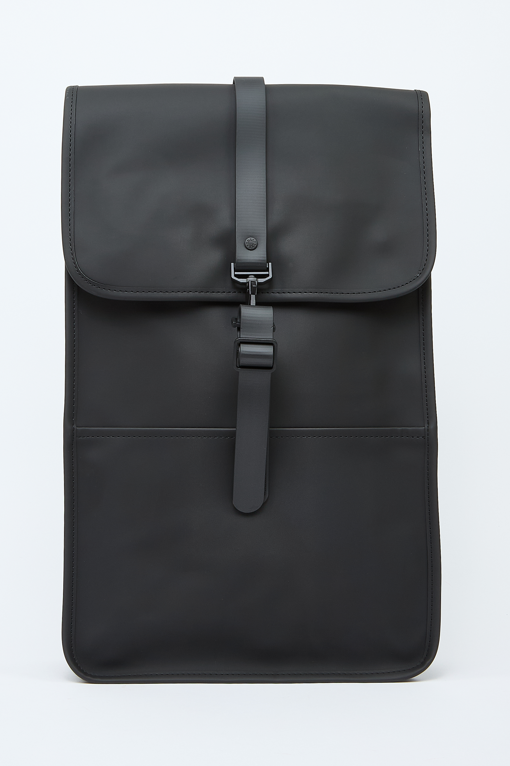 Водонепроницаемый материал, тисненый логотип спереди, строчка в тон, откидной клапан, застежка-карабин, плоская ручка сбоку, ручка с плоским верхом, две регулируемые бретели, внутреннее отделение для ноутбука и основное отделение.