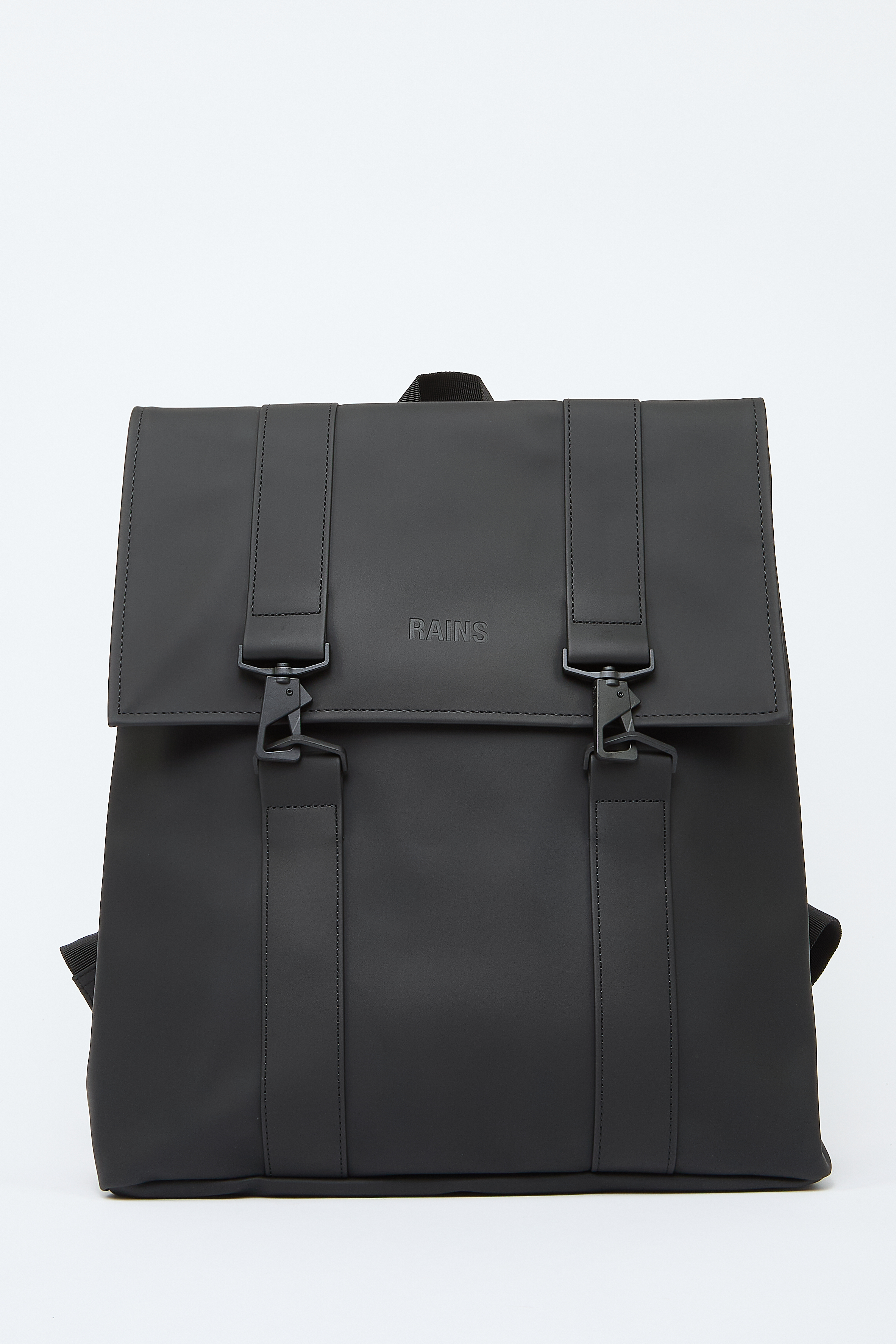 Водонепроницаемый материал, тисненый логотип спереди, строчка в тон, откидной клапан, застежка-карабин, плоская ручка сбоку, ручка с плоским верхом, две регулируемые бретели, внутреннее отделение для ноутбука и основное отделение.