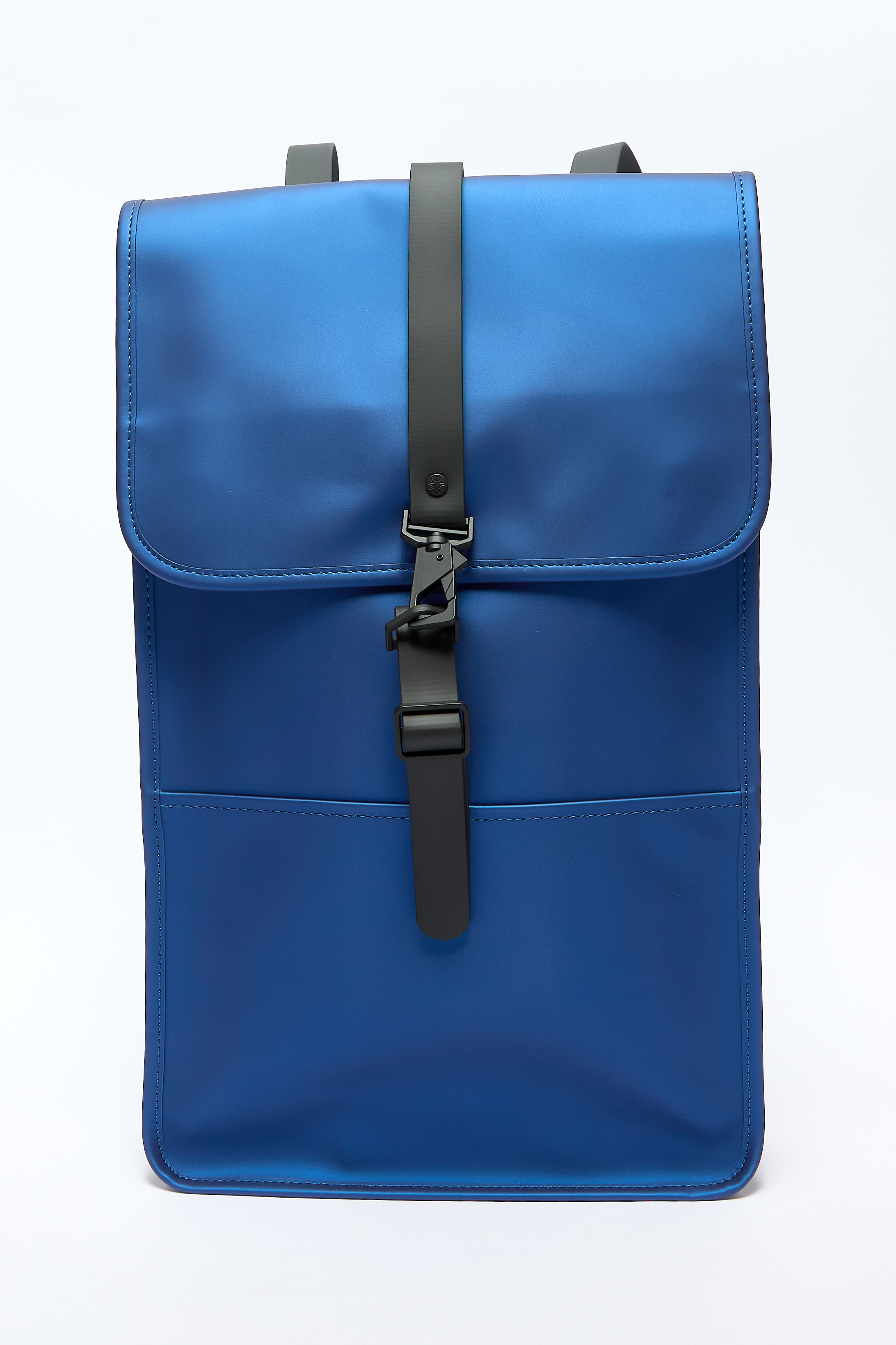 Водонепроницаемый материал, тисненый логотип спереди, строчка в тон, откидной клапан, застежка-карабин, плоская ручка сбоку, ручка с плоским верхом, две регулируемые бретели, внутреннее отделение для ноутбука и основное отделение.