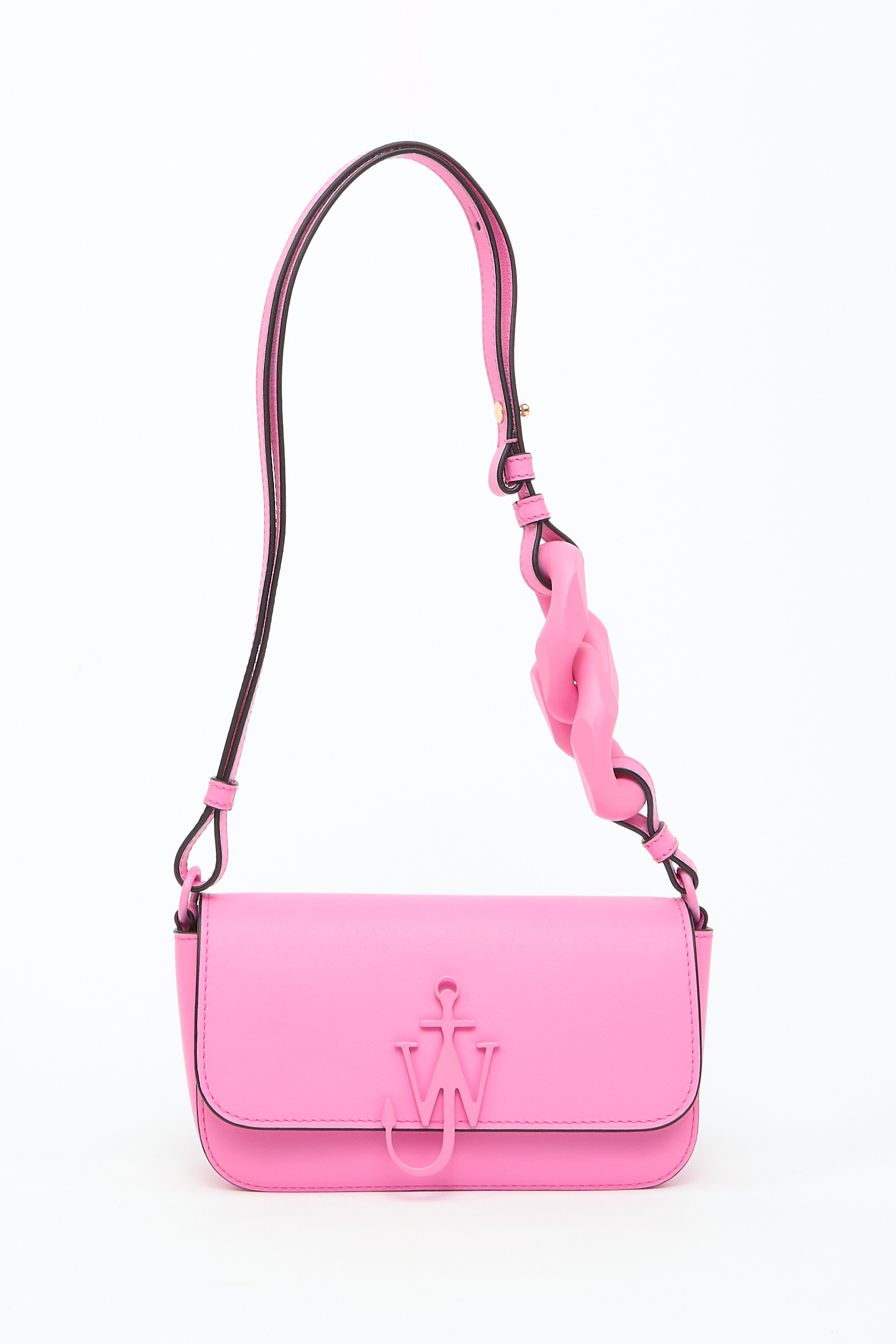 Логотип с инициалами JW в виде якоря, цепочка, откидной клапан и регулируемый ремень на плечо.