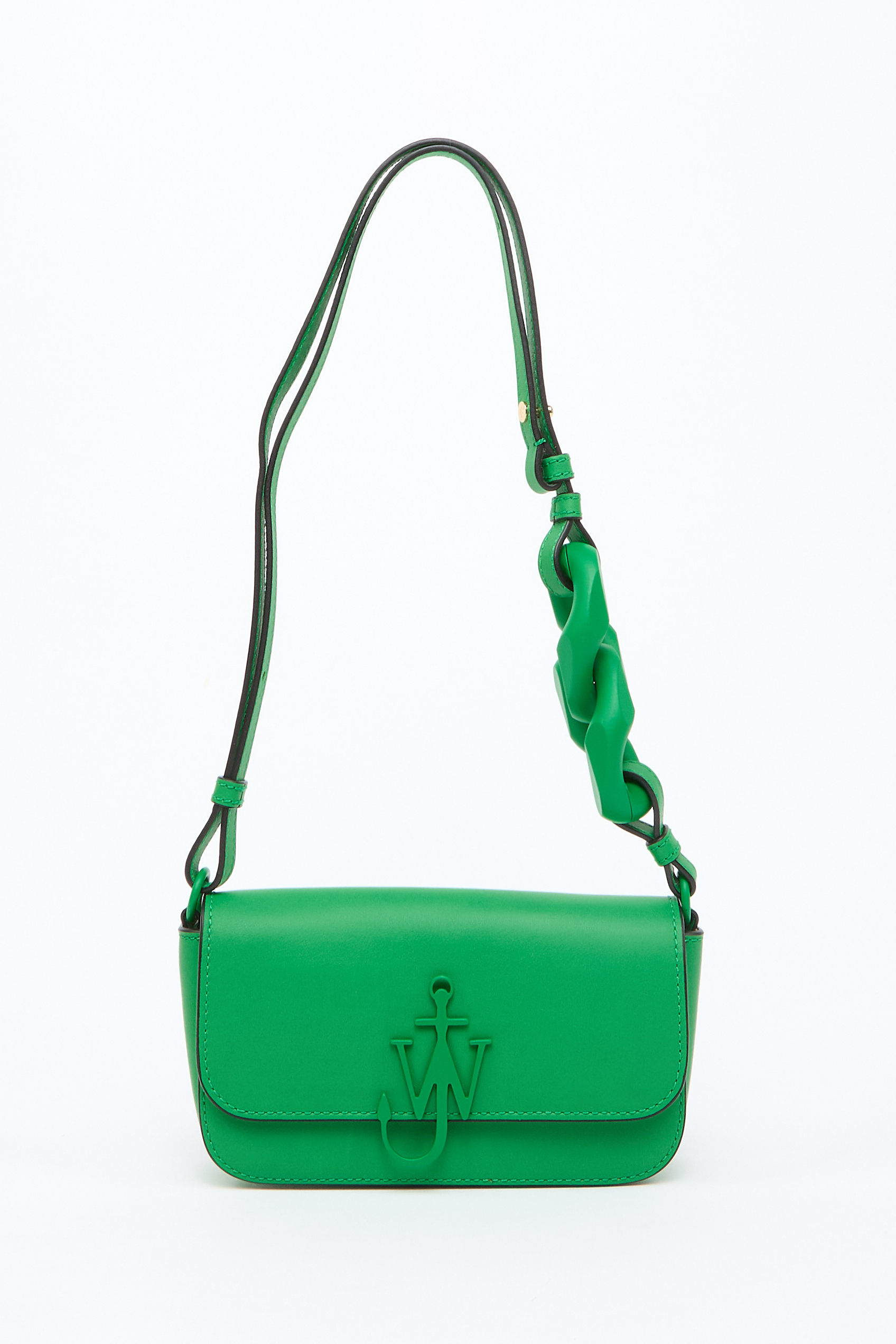 Логотип с инициалами JW в виде якоря, цепочка, откидной клапан и регулируемый ремень на плечо.