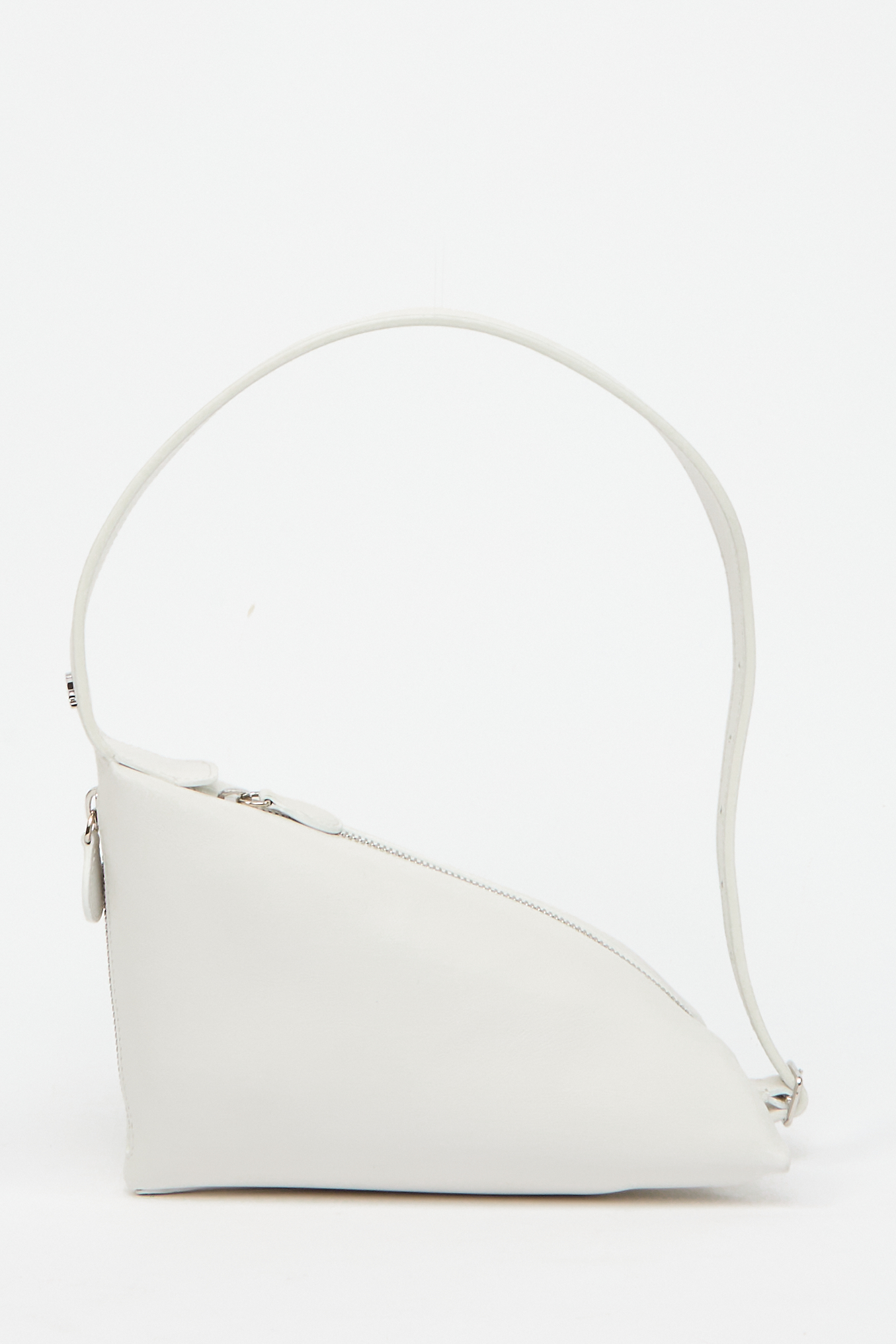 Телячья кожа, гравированный логотип, серебристая фурнитура, застежка-молния и регулируемый плечевой ремень.