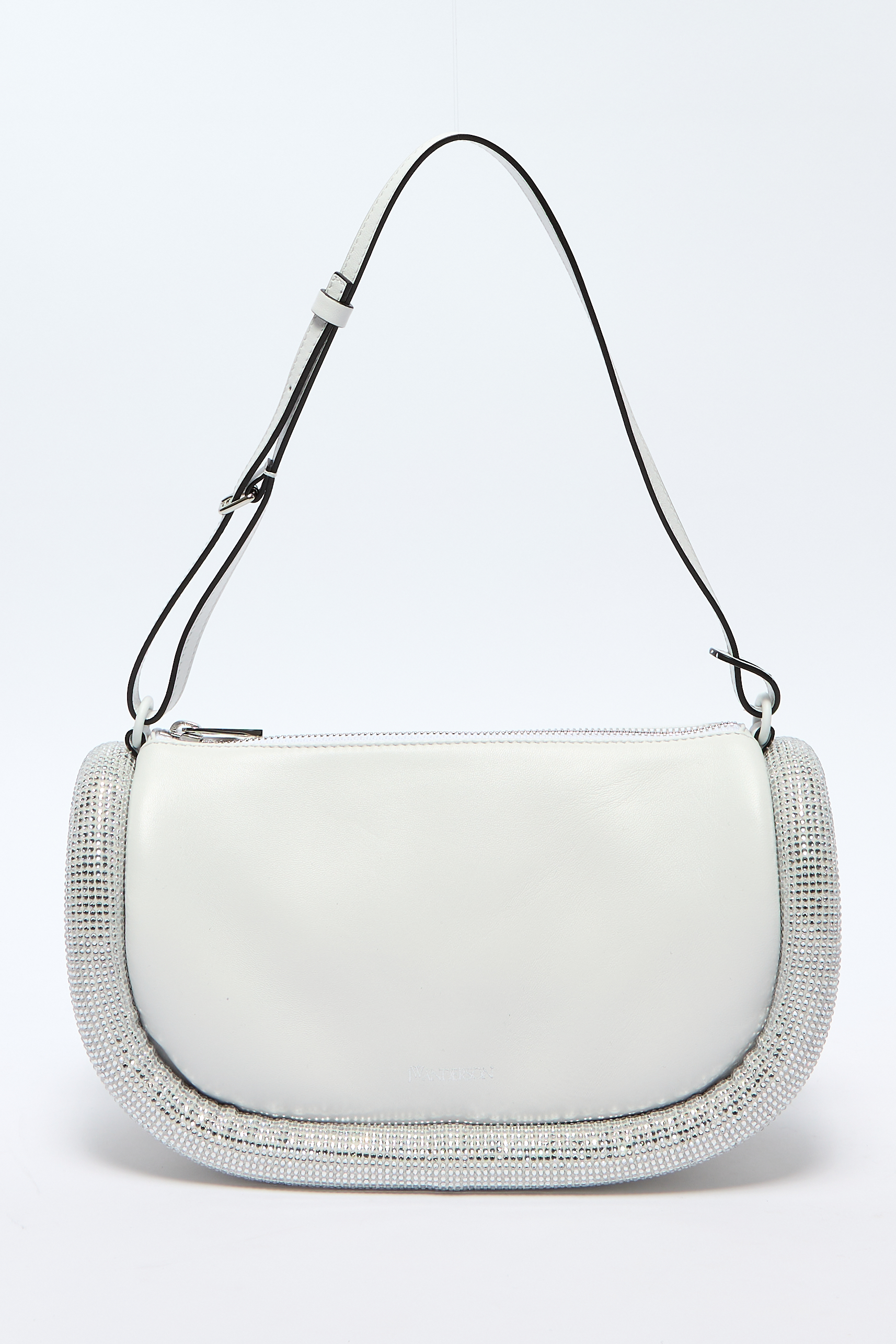 Декор из кристаллов, тисненый логотип спереди, длинная верхняя ручка и застежка на молнии сверху.